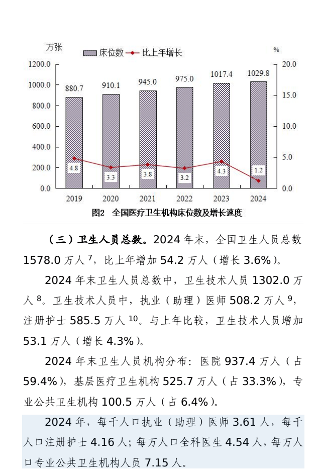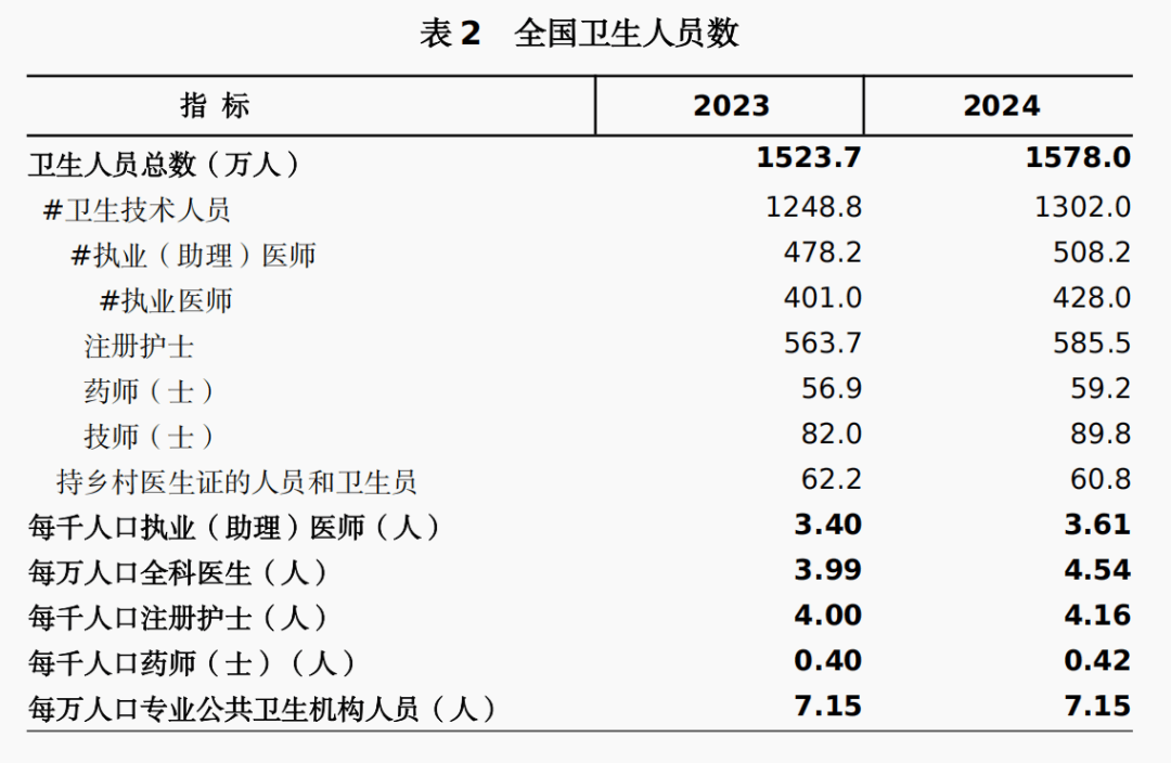 ①. 2024腊尾执业(帮理)医师508.2万人,每千人丁执业(帮理)医师3.61人,比2023年添加了30万人;